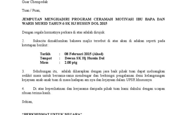 Contoh Surat Jemputan Penceramah 2022 : Surat Jemputan Ceramah
